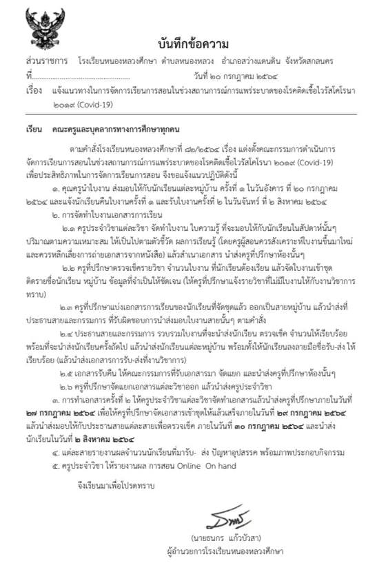 การจัดการเรียนการสอนในรูปแบบ On hand ในสถานการณ์การแร่ระบาดของโรคโควิด-19