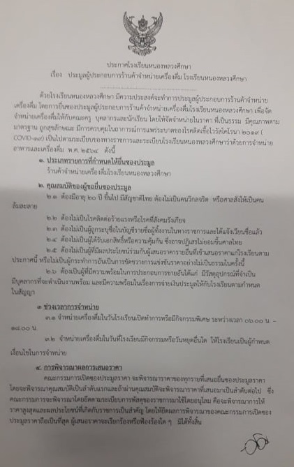 ประกาศประมูลผู้ประกอบการร้านค้าจำหน่ายเครื่องดื่ม