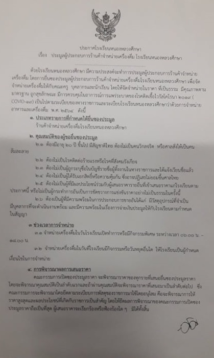 ประกาศประมูลผู้ประกอบการร้านค้าจำหน่ายเครื่องดื่มใหม่